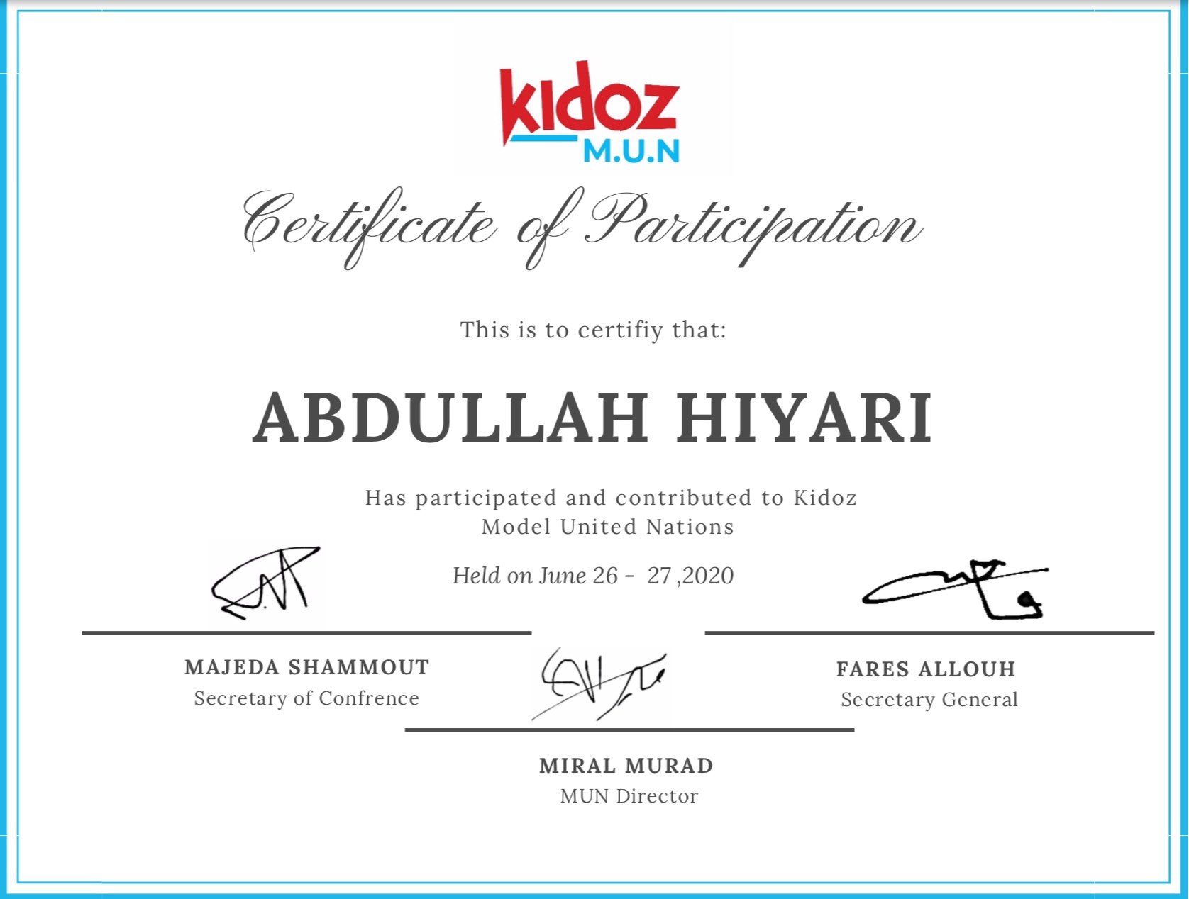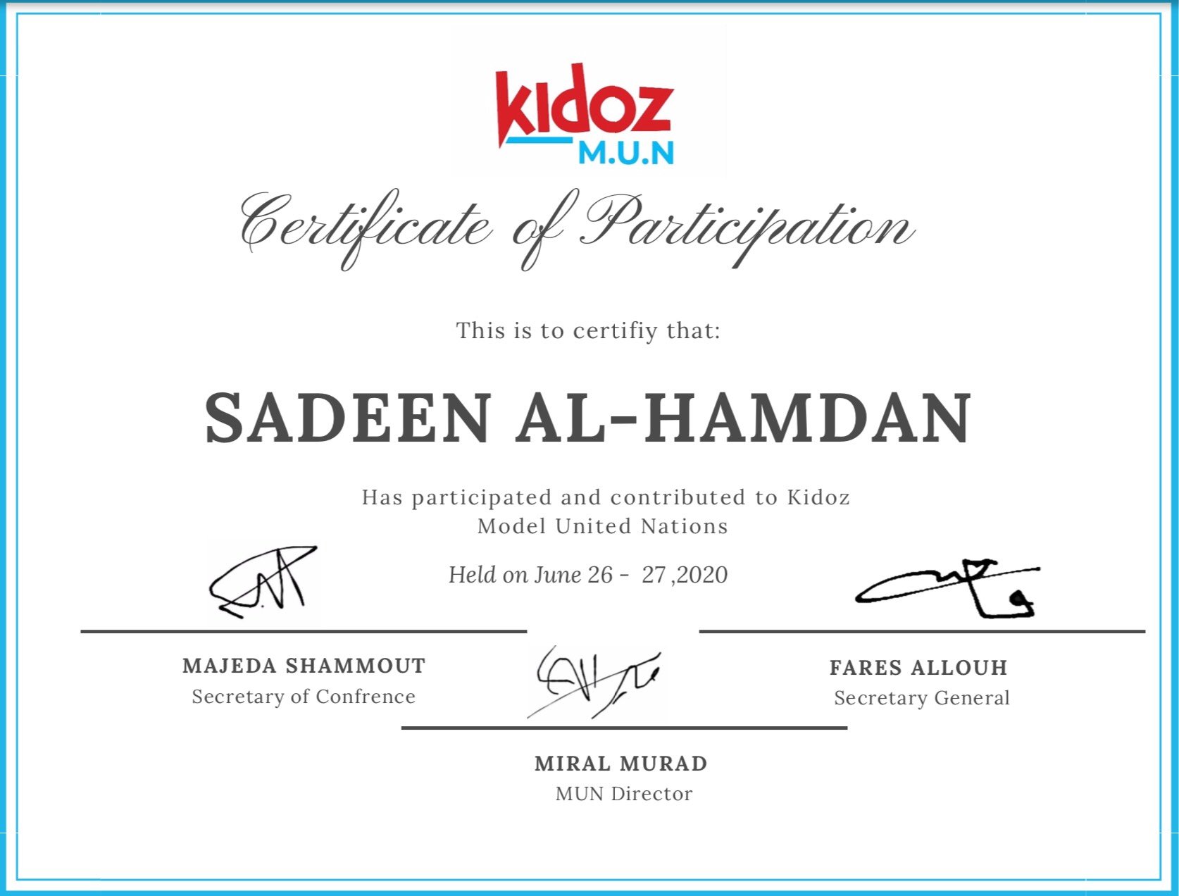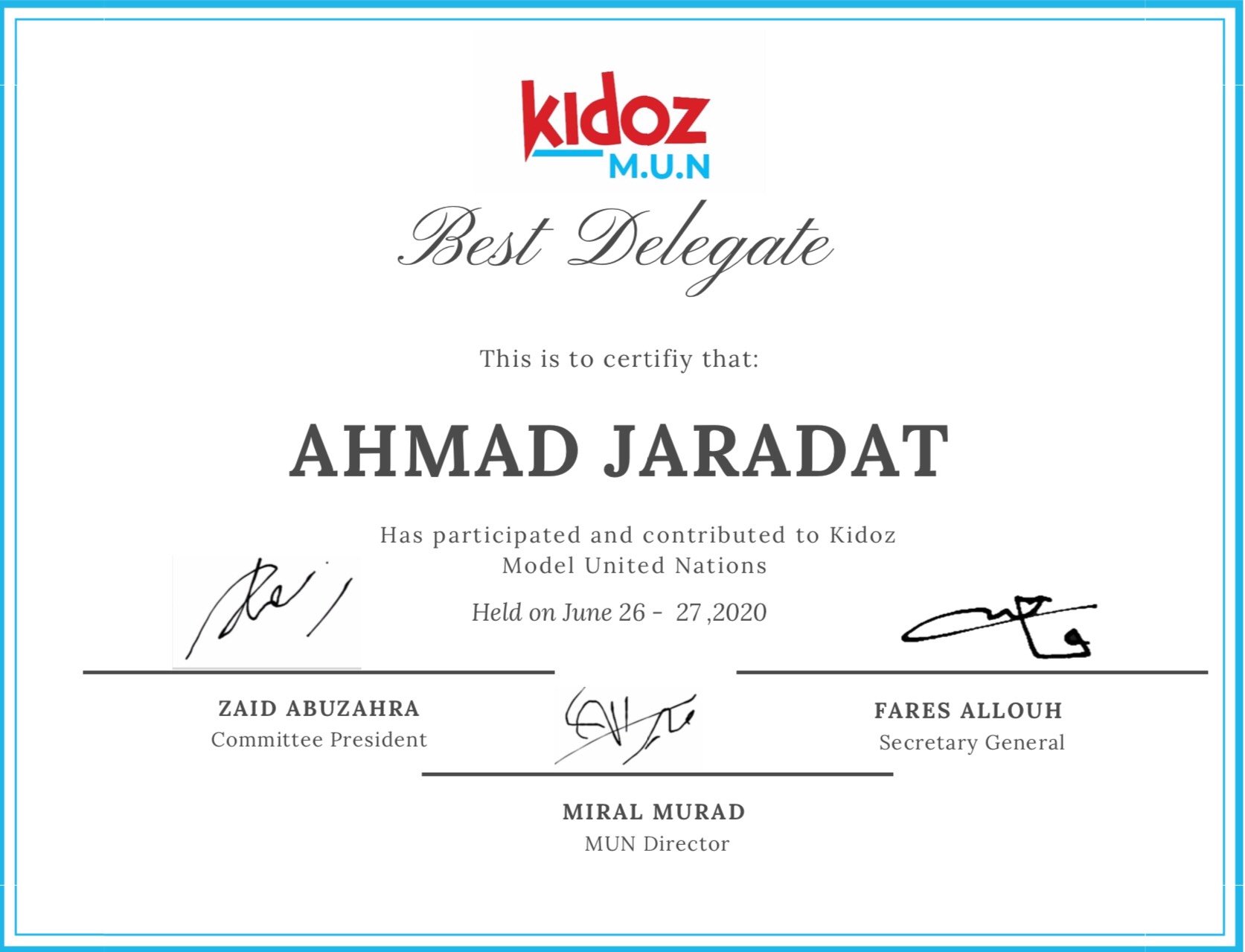 على نجاحهم لحصد لقب أفضل مندوبين لهذا المؤتمر، وشكرا لكل من ساهم وشارك في نجاح التجربة الأولى لمؤتمر KidozMUN